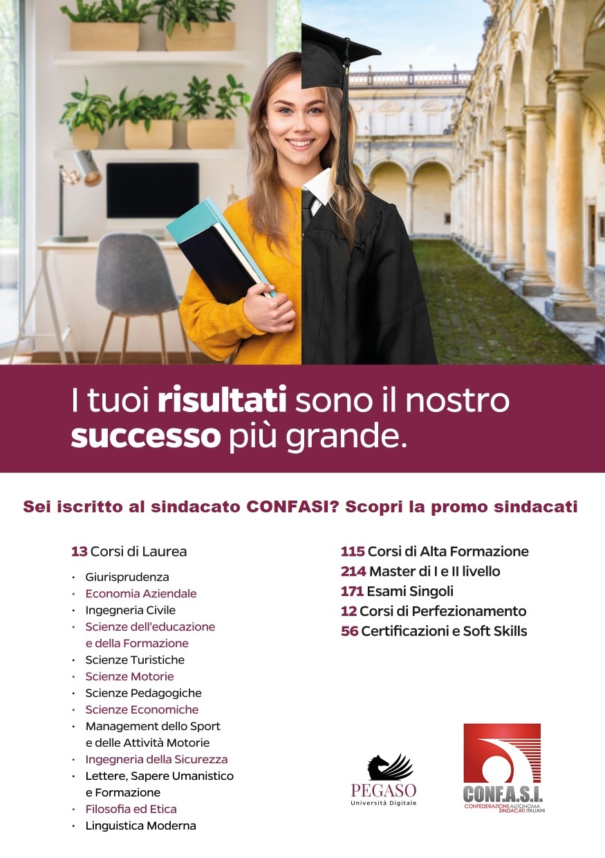 Si informano tutti gli operatori delle sedi territoriali e tutti gli iscritti Conf.A.S.I. che è stato formalizzato un accordo quadro con l'Università Telematica Pegaso. (www.unipegaso.it). L’accordo...